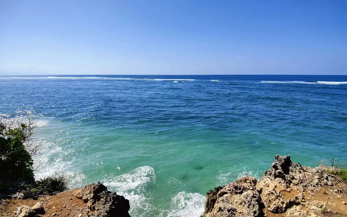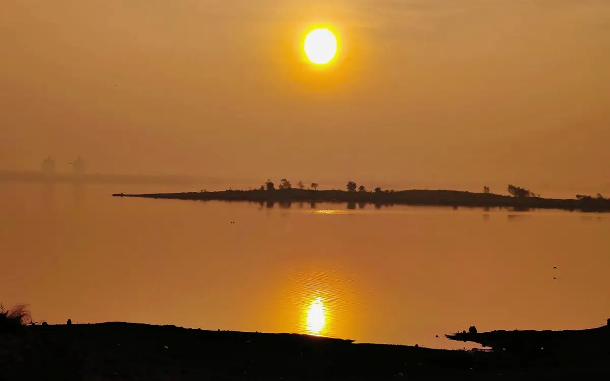 The river flowing towards the sea.