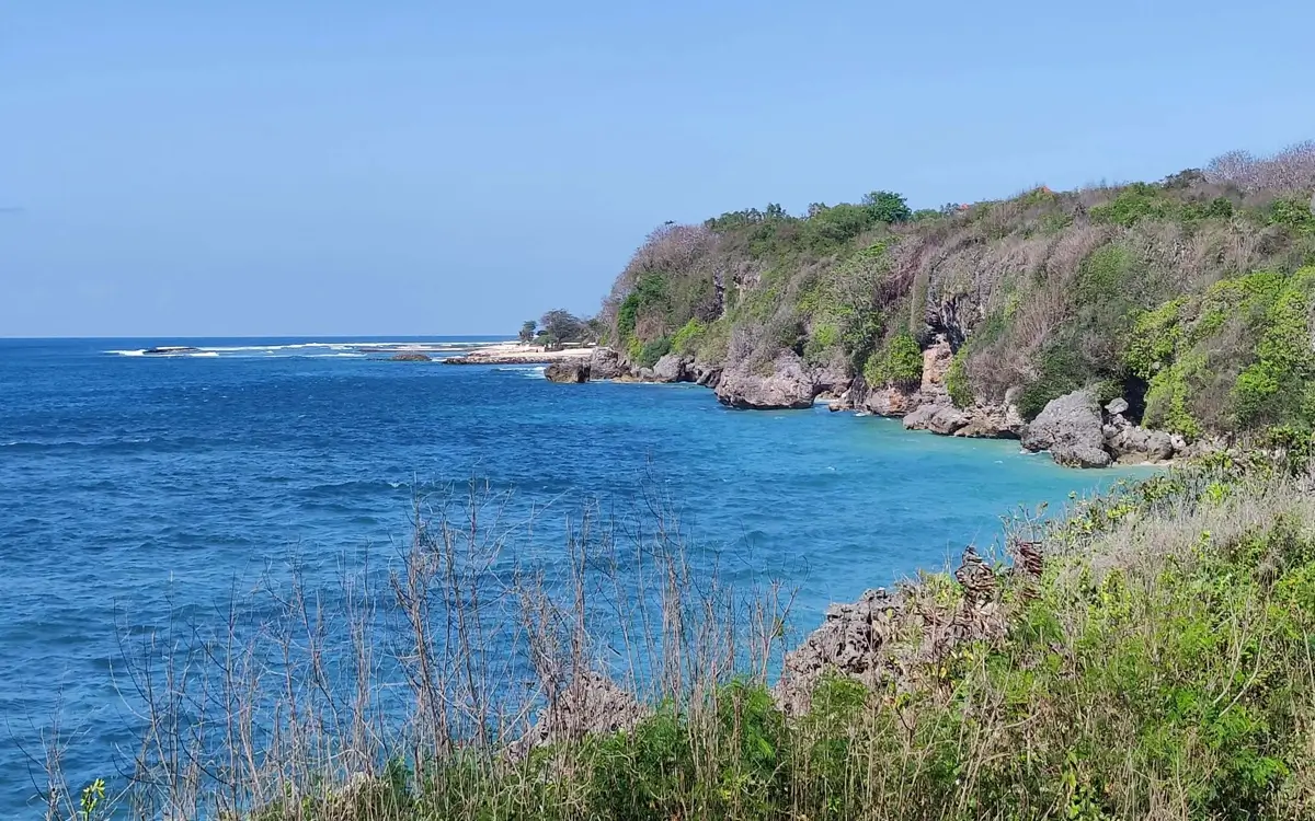 The river flowing towards the sea.